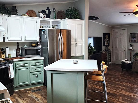 - Breakfast Bar, Ceiling Fan(s), Fiberglass Stall Shower, Kitchen Island, Laminate Counters, Linen Closet, Open Floorplan, Pantry, Primary Downstairs, Shower/Tub Combo, Smart Thermostat, Vaulted Ceiling(s)