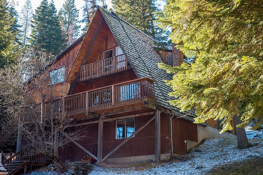 Vacation rental property or home at Wallowa Lake area with 1/6th interest in semi-private boat dock across the street. 100' of lake frontage to enjoy. This spacious home has a warm cabin feel and spreads vacationers out over 3 levels to give privacy and space to all. There are 5 decks from which to enjoy the treed setting and a peek a boo view of the lake. Generous and level parking off street. Turn key-all furnishings included.