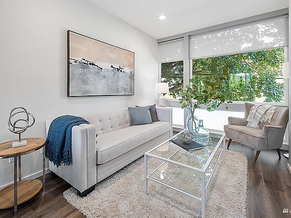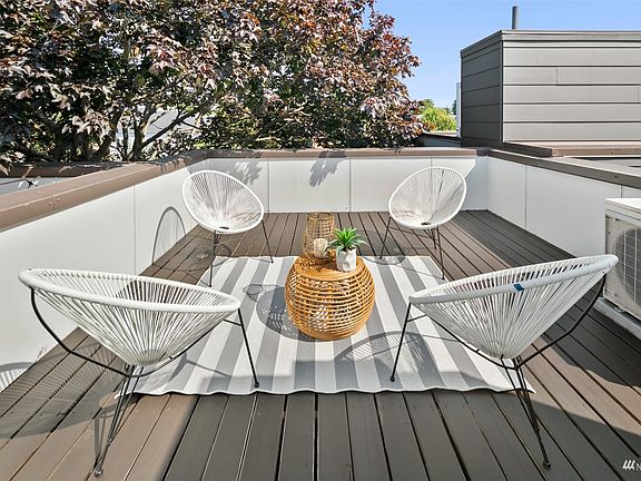 Steps from the best of Ballard, yet tucked away from it all, this like-new townhome is a unique find. Floor to ceiling windows greet you in the open and spacious main level featuring kitchen with eating space, dining area, living room and half bath - perfect for entertaining. Ground floor flex-space is an ideal office, third bedroom or lounge. Large and secluded rooftop deck enjoys peekaboo Space Needle views. Oversize garage with excellent built-in storage, plenty of street parking nearby. Efficient mini split heating and air conditioning. Fresh paint and brand new flooring. Just move right in and start enjoying Ballard's outstanding restaurants, bars and shops. Your hideaway in the heart of everything awaits!