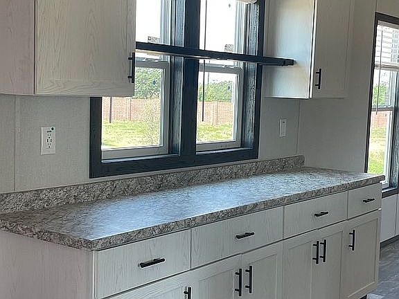 This open concept for fun living is great for a big family. The living, dining, and kitchen space is perfect for entertaining and family time. There are many windows offering lots of natural light. The dark brown trim throughout the home, along with accented island created a warm, happy feel. Both bathrooms are equipped with both tub/shower fiberglass inserts. Whirlpool stainless steel appliances are an upgraded touch.