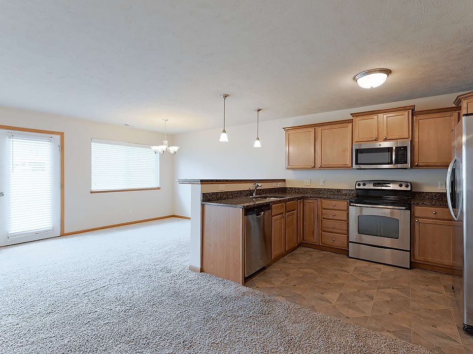 Welcome to 6105 Laroche Rd! This beautiful 3 bedroom, 2.5 bathroom townhome has 1,739 square feet of living space and a 2-stall attached garage. features high-end interior finishes like granite countertops and stainless steel appliances. Just off the entryway is a half bath. The main level features an open-concept living area with a door to the patio allowing for lots of natural lighting. The kitchen is equipped with ample cabinet space and full-size stainless steel appliances, including a dishwasher, as well as granite countertops. The kitchen bar has room for bar stools and opens to the dining area, which is adjacent to the large living room.