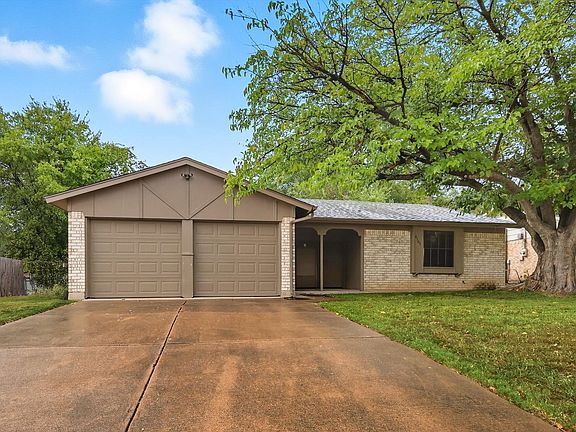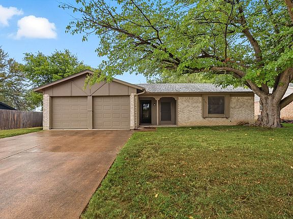 Beautifully refreshed 3-bedroom, 2-bathroom home offering 1,344 sq ft of stylish and functional living space. Nestled under a mature shade tree in a quiet neighborhood, this move-in ready home combines modern upgrades with timeless comfort. Step inside to an open living room filled with natural light, featuring soaring ceilings, a dramatic exposed beam, and a cozy white brick fireplace that creates the perfect gathering space. Fresh neutral paint and luxury vinyl plank flooring run throughout, offering a clean, cohesive look and easy maintenance. The dining area with bay windows provides a bright, inviting spot for meals, while the updated kitchen offers ample storage and a smart layout. The primary suite includes a private bath, while two additional bedrooms offer versatility for family, guests, or a home office. Outside, enjoy a spacious fenced backyard ideal for entertaining, gardening, or relaxing under the Texas sky. The two-car garage and extended driveway provide plenty of parking and storage. Conveniently located near shopping, dining, schools, and major highways, this home is perfectly situated for easy commutes and everyday convenience.