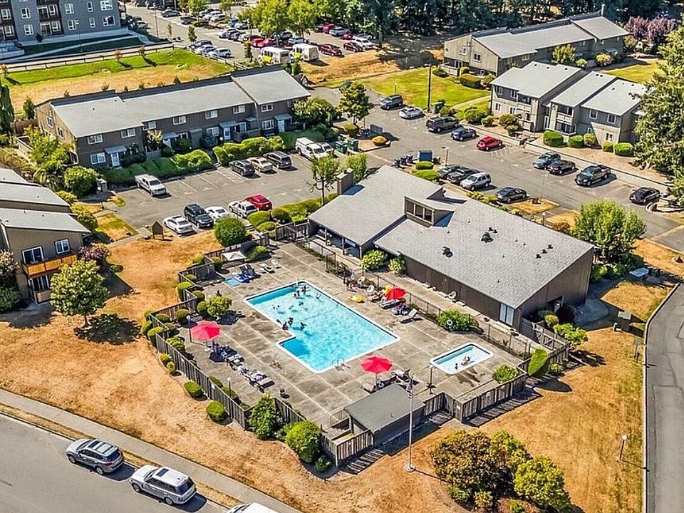 (FOR RENT) North End ground floor corner unit with 2 bedrooms and 1 bath. Kitchen has granite counter tops. Tile floor in both kitchen and dining area as well as the bath. Primary bedroom with spacious closet. Private patio area with exterior storage. Close to North Section N's laundry room. Amenities include swimming pool, club house and exercise room. Grounds well maintained and cared for. Easy access to HWY 16 and I-5. Shopping nearby. No pets allowed. Water, sewer and garbage included in rent. Renters Insurance and Benefits Package Required. See Flyer For Details.