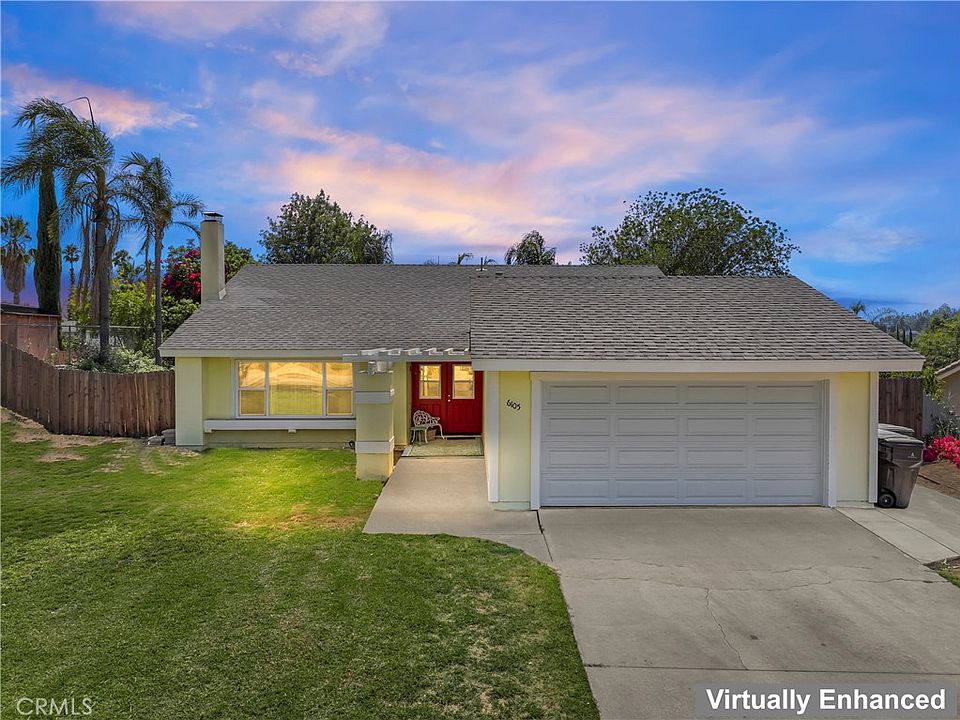 Charming single-story 4 bedroom, 2 bath home in the Canyon Crest neighborhood. Double door entry leads to a large sitting room with a Vaulted Ceiling. Fifties Retro Kitchen features white floor to ceiling cabinets, light granite-look composite countertops, a breakfast counter, and extra space for a dining and sitting area. Primary bedroom suite includes a single vanity and tub in shower. Hall bathroom with a single vanity and tub in shower is shared between three additional large bedrooms. Fourth bedroom is currently configured as an office with no closet. Windows throughout the home let in a lot of light. Seller is offering a $10,000 Flooring Credit. Ceiling fans throughout the home. Backyard features a covered patio and plenty of open space for whatever is desired, including possible RV parking. The back also features a fully insulated She-Shed equipped with recessed lighting, portable AC, and electrical outlets for an additional private get-away space. Attached garage fits two vehicles and the driveway can fit two vehicles. Quiet neighborhood with a view of the city from the front. No HOA and low taxes.