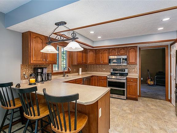 Quiet and spacious describe this lovely 4 bed/2.5 bath gem! Resting on a quiet and scenic cul-de-sac this home gives you tons of space in a park-like neighborhood. Entering you're greeted with beautiful flooring that leads to the living rm, kitchen and family rm. The kitchen is a dream with tons of counter/cabinet space, newer SS appliances and an eat-in bar. The kitchen is open to the family room which features a gas FP. The beautiful morning rm is the perfect spot to enjoy your coffee! Extra wide stairs lead to the 2nd level which offers 4 bedrms, including a master with private bath and walk-in closet, 2nd bath and laundry rm. No need to carry clothes up & down stairs! The basement offers more storage/potential living space and is plumbed for an additional full bath. Updates include dishwasher, microwave, some flooring and paint (2022), water heater (2021), range and refrigerator (2020). Great home in a beautiful neighborhood. All it needs is YOU! See this one today.