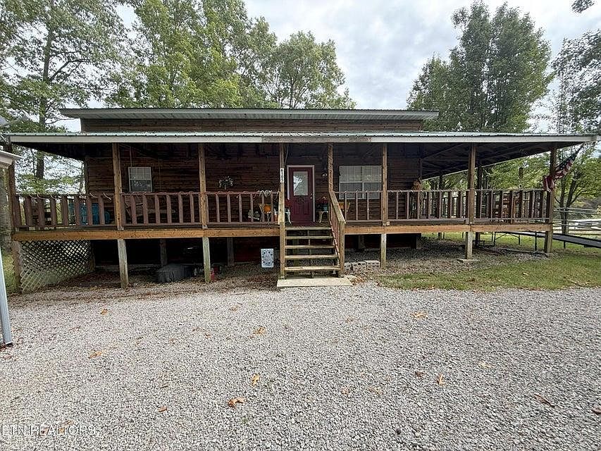 Large Rustic 2 story cabin home with basement featuring wrap around covered porch on 3 sides. Home has open floor plan that includes large kitchen with plenty of cabinets, with 2 spacious bedrooms on main floor with bath and then 2 large bedrooms upstairs with 1/2 bath. In the basement you will find an additional bathroom and rooms that could easily be finished for extra space. Call today!