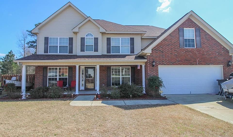 Better than new home in the desirable Senators Ridge! The rocking chair front porch, well-maintained landscaping, new exterior lights, and new storm door makes for great curb appeal! The inviting foyer leads you into both the dining room and formal living room area. The kitchen features an eat-in area, pantry, new garbage disposal, under cabinet lighting, and tons of storage space! Bright and airy great room with vaulted ceiling and electric fireplace! One bedroom, a full bath, and the laundry room are conveniently located downstairs off the kitchen. The hidden stairwell leads up to the additional 3 bedrooms. Master suite is equipped with it's own sitting area, large walk-in closet, and private bath with dual sinks, garden tub, and walk-in shower. New roof, water heater, A/C compressor, and LVT flooring on main floor. Large fenced-in back yard with a great view! New gutters installed on back of house. $800 fence gate installed. 2 car garage. NO HOA! Only 2 miles from Fort Gordon!