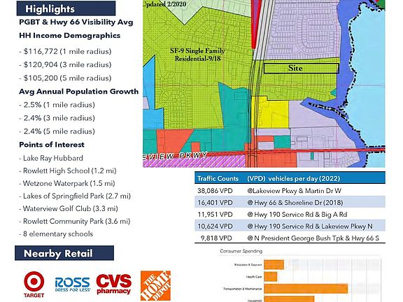 EXCELLENT and rare opportunity for builders and buy hold investors. 15.8 acres of SF9 Single Family zoned land adjacent to 190 George Bush Highway and with Lake Ray Hubbard waterfront. This is two parcels, 12.50 acres with an additional 3.3 acres. Listing price is for both, but can separate. Please call listing agent for details. Churches fall under this zoning category as well.