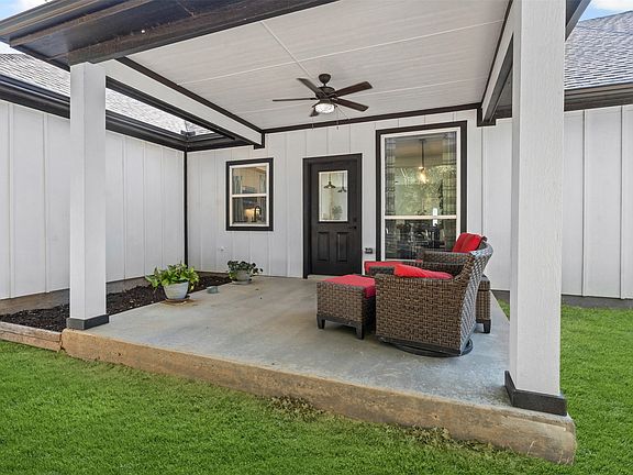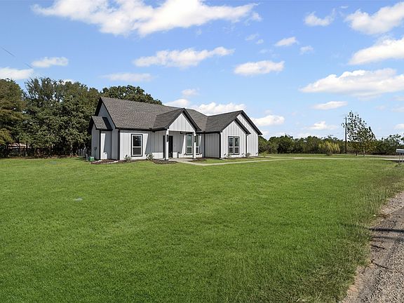 Welcome to your dream home! This stunning modern farmhouse, built in 2022, is nestled on a coveted corner lot in highly sought-after Granbury, with no HOA. The home features eye-catching board and batten wood siding, enhanced by stylish down and up lighting, along with modern outdoor lanterns featuring detailed glass, exuding exceptional curb appeal. Enjoy the privacy and tranquility of 1.091 acres, complete with mature trees in the backyard—perfect for outdoor gatherings and family activities. Step inside to discover an airy open layout adorned with wood grain luxury vinyl plank flooring throughout the main areas, creating a seamless flow. The heart of the home features a gourmet kitchen with a large island, sleek stainless steel and black GE appliances, and illuminated upper cabinets. Plus, a massive 5x7 ft walk-in pantry offers ample shelving and storage for all your culinary needs. Colonial baseboards and windows throughout allow for abundant natural light, enhancing the warm and inviting atmosphere of the home. Retreat to the primary bedroom, boasting an ensuite bathroom complete with a spa-like waterfall shower feature, a stunning chandelier, and soaring 13 ft vaulted ceilings. Relax on the covered back patio overlooking your serene yard, ideal for enjoying peaceful mornings or entertaining guests. This exquisite modern farmhouse in Granbury offers the perfect blend of modern elegance and country charm!