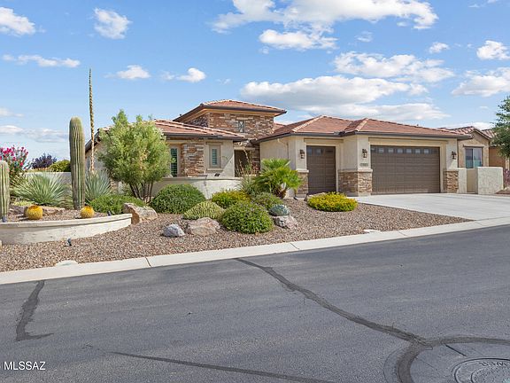 Open House Sun 10/19. Tesoro floor plan on a cul-de-sac across from State land. Two bedroom plus den with 2 1/2 baths, garage includes 4' extension and golf cart garage, built in 2018. The front offers stacked stone exterior, courtyard, and views of the Catalina Mountains. The interior offers 8' doors and tile flooring throughout. Gourmet kitchen layout with gas cooktop, dove-tail soft-close drawers. The great room has 11' ceilings and crown molding. Built-in cabinets at den and entertainment center. Expanded walk-in closet at master with closet organizers. Gorgeous, fully walled backyard with gas fireplace and extended pergola. Epoxy garage floor. Fridge, washer, dryer included! Check out all the facilities, clubs, and activities that the gated community of Saddlebrooke Ranch has to offe