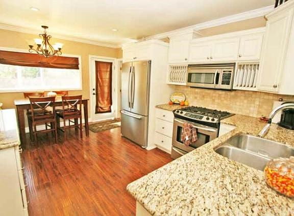 Remodeled 3 Bedroom 1 Bathroom pool home with interior tract location. Spacious Living room with crown molding/ baseboards and recessed lighting. Exquisitely remodeled kitchen with Beautiful Granite counter tops, solid wood kitchen cabinets, and large window with patio/ pool views. Bathroom completely remodeled as well with Granite counter tops, tiled floor, and tiled shower. Dark Wood laminate floors. New dual paned windows. Smooth ceilings throughout. New front door. Nicely sized bedrooms with crown molding/baseboards and ceiling fans. Newer Forced air heating with electrical and ducting that make it AC ready. Upgraded plumbing and electrical. Great backyard with new landscape, fire pit, and upgraded pool/ spa with waterfalls- all redone 3 years ago. Removable safety fence surrounds entire pool and spa. Pool equipment is only 3 years old with variable speed pump that is energy saving. Large covered patio with 2 fans, perfect for family gatherings. Don't miss out on this top of the line beautiful home.