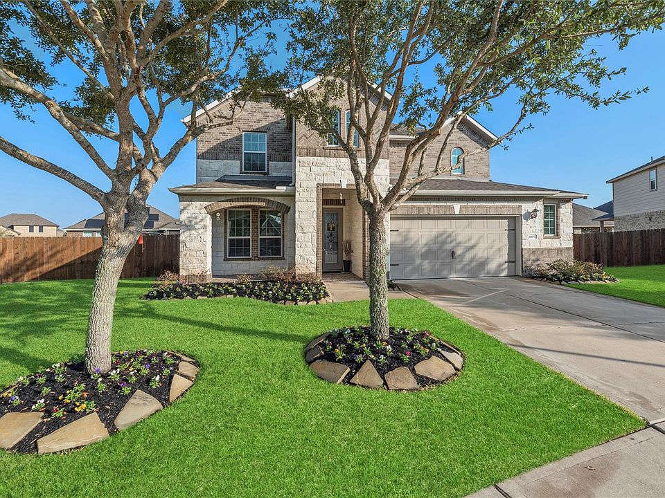 Welcome to this beautifully maintained Meritage home, ideally located in the highly sought-after Stonecreek Estates subdivision. Situated on an oversized cul-de-sac lot, this spacious home offers 4 bedrooms, 3.5 bathrooms, a large game room, and an extended 2-car garage with outlet for EV charger. The open-concept layout features a fabulous kitchen with a center island, abundant cabinet space, and seamless flow into the breakfast area and living room—perfect for entertaining. The formal dining room is currently styled as a cozy lounge but could easily be converted into a home office to suit your needs. Step outside to a covered patio, ideal for relaxing evenings. Zoned to top-rated schools and conveniently close to shopping, dining, and with easy access to Hwy 59, this home truly has it all. Residents also enjoy resort-style amenities including a pool, splash pad, and tennis court.