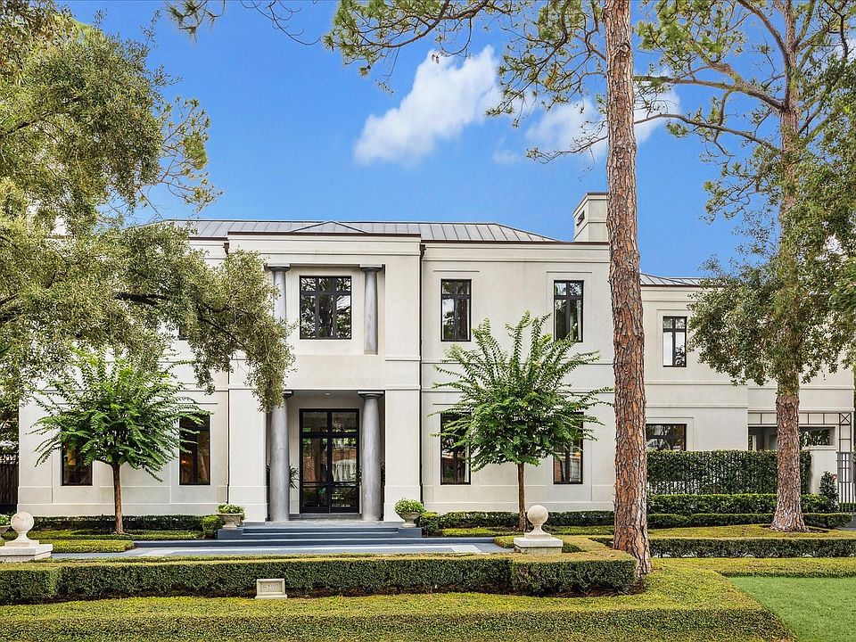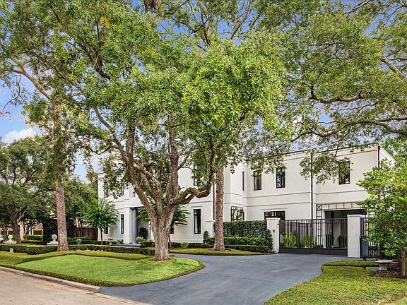 Designed by acclaimed architect Michael Landrum, this custom Tanglewood home sits on an oversized cul-de-sac lot near Houston Country Club. Created for both elegance & functionality, it offers soaring ceilings, 4 Isokern fireplaces & commercial-grade windows/doors. The chef’s kitchen includes Sub-Zero fridge/freezer, walk-in pantry & wet bar. Flexible 4–5 bedroom plan features a luxurious primary suite with dual baths/closets plus spaces ideal for gym or office. Upstairs: game room & 3 large bedrooms. Private guest quarters with separate entrance, living area & kitchenette. Landscaped grounds with raised terrace, pool & lighting extend the entertaining space. Circular drive & double-gated motor court complete this rare Tanglewood offering.