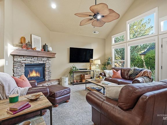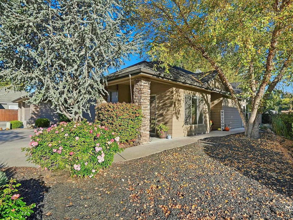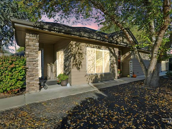 Discover the perfect balance of comfort, convenience, and craftsmanship in one of Boise’s most desirable pocket neighborhoods—Hazelbrook. Tucked away on a private road in a quiet cul-de-sac, this beautiful patio home offers the perfect blend of quality craftsmanship, thoughtful design, and easy living. Built by prestigious builder, Zach Evans, enjoy quick access to the Boise Greenbelt, Boise River, Garden City Library, shopping, dining, and is minutes from the foothills. This low-maintenance home features three inviting outdoor patios for morning coffee, entertaining, or quiet reflection. Inside, 9-foot ceilings and a vaulted great room create an open, airy atmosphere. The kitchen boasts a large island, granite countertops, tile backsplash, and stainless appliances, with tile floors extending through the kitchen, dining, hall, and main bath. The primary suite offers patio access, dual vanities, a soaking tub, separate shower, and 5'x10' walk-in closet. The third bedroom doubles as an office or den with its own private outdoor patio sitting area. Upgrades include Hunter Douglas top-down/bottom-up blinds, wood-wrapped windows, ceiling surround sound speakers, central vacuum, water softener plumbing, ceiling fans, LeafFilter gutters, and a finished garage with 8-foot door. With minimal lawn care and a peaceful common area backdrop, this home offers easy living without compromise.
