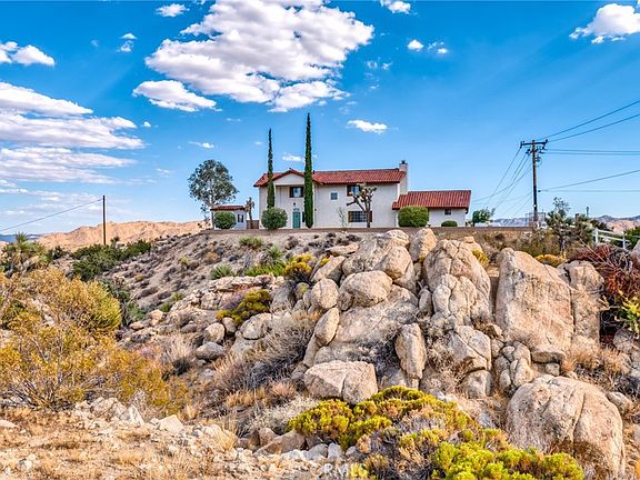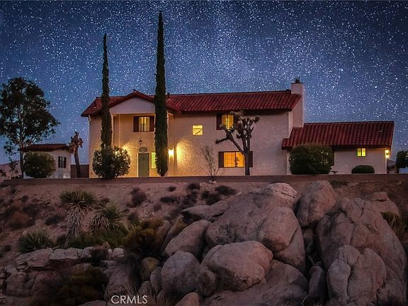 Nestled atop the highly coveted boulders in Western Hills Estates, this exceptional property spans three lots, offering 2.2 acres (3 lots in total) of scenic beauty and privacy. This spacious 2,273 sq. ft. home features 3 large bedrooms and 3.5 baths, with an attached 1-car garage. The ground floor boasts a light-filled living area with a cozy wood-burning fireplace, a dining room, a breakfast nook, and a well-appointed kitchen, all finished with charming Saltillo tiles. The main floor bedroom, complete with a private bathroom, offers comfort and convenience. Upstairs, two oversized bedrooms showcase breathtaking city lights and mountain views. One bedroom includes sliding glass doors leading to a second-story deck, while both are equipped with ceiling fans, plush carpeting, and private baths. The outdoor spaces include a fenced yard section and a covered patio with stunning valley views, perfect for outdoor relaxation. This rare opportunity in Western Hills Estates is not to be missed! Located in the heart of Yucca Valley, this home offers easy access to the region?s many attractions, including the iconic Joshua Tree National Park, just a short drive away. Enjoy local shopping, dining, and the unique charm of the nearby Joshua Tree village. Whether you're an outdoor enthusiast or looking for a serene retreat, this property is perfectly positioned to enjoy the best of the high desert lifestyle.
