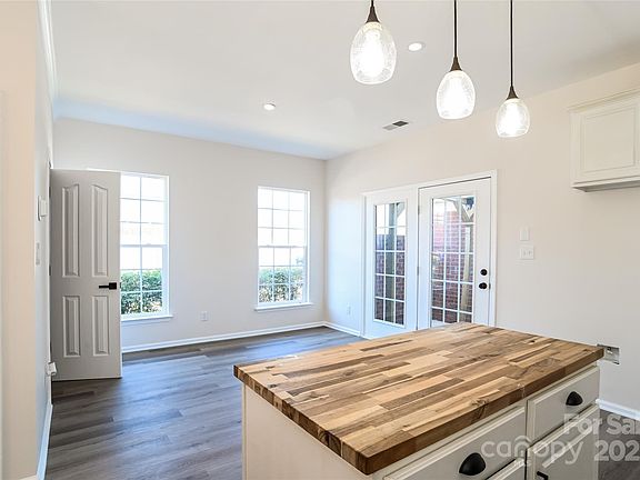 Stylish light fixturesCozy fireplaceBreakfast barButcher block islandWalk-in showerFresh interior paintAmple counter space