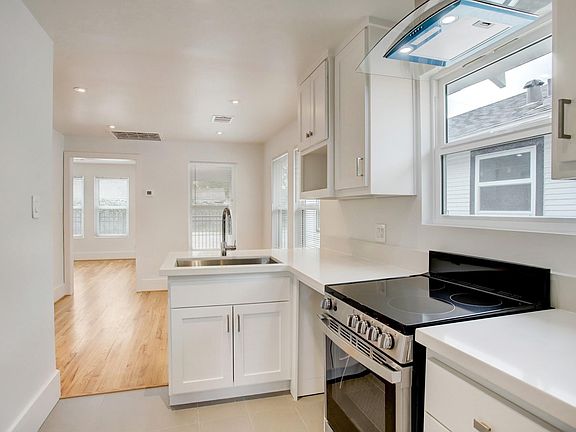 Beautifully remodeled and thoughtfully redesigned, this charming Heights home blends modern comfort with classic bungalow appeal. Bright, open living and dining areas flow seamlessly into a sleek kitchen featuring quartz countertops, stainless steel appliances, ample cabinetry, and a convenient breakfast bar. Gorgeous wood floors run throughout, enhancing the clean, airy feel. The spacious indoor utility room offers extra storage and a full-size washer/dryer setup. The bathroom showcases contemporary finishes, a deep soaking tub, and built-in shelving. Both front and back entrances provide easy access, with a fully fenced private backyard perfect for relaxing or entertaining. A gated shared driveway leads to dedicated rear parking. Move-in ready and located minutes from dining, parks, and all the best the Heights has to offer.