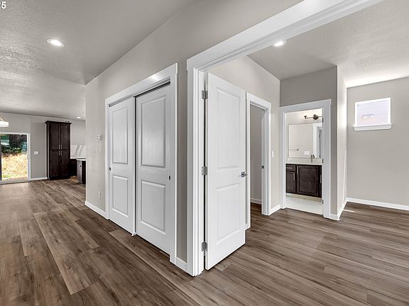 This spacious nearly 3,000 square-foot home offers a perfect blend of comfort and modern design. Featuring four bedrooms, including two primary suites—one conveniently located on the main floor and another upstairs. This home provides flexibility for multi-generational living or guest accommodations. The open-concept kitchen has quartz countertops and flows seamlessly into the family room, creating an inviting space for gatherings.Upstairs, a large loft serves as a versatile area, perfect for a second living room, home office, or entertainment space. The en suite bathroom is beautifully designed, with the main suite boasting a soaking tub and a separate tile shower for a spa-like retreat. Outside, the covered patio offers a charming space for outdoor relaxation, while the two-car garage provides ample parking and storage. This home combines luxury with practicality, ideal for both relaxation and entertaining.