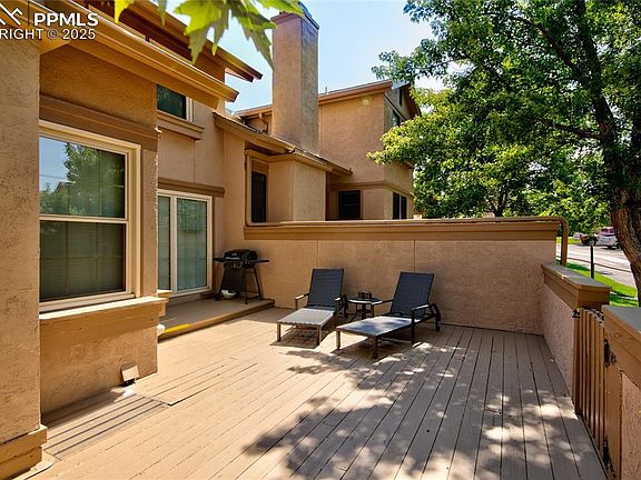 Experience comfort, space & convenience in this beautifully maintained townhome, perfectly situated near Palmer Park, Academy Blvd, & Powers Corridor. The charming exterior welcomes you into a light-filled interior with newer flooring & vaulted ceilings. The open-concept Living Room features a cozy wood-burning fireplace, perfect for quiet evenings or entertaining guests. The updated oversized kitchen offers stone countertops, a large breakfast bar, stainless appliances & an oversized pantry, all flowing into the dining area. Enjoy your morning coffee or evening unwind on the private enclosed patio. Upstairs, you’ll find two spacious bedrooms, plus a versatile loft ideal for a home office or guest bedroom. The finished basement includes a large second suite, another family room & updated full bath, offering privacy & flexibility. With an attached 2-car garage, ample storage & a move-in-ready condition, this home is a rare find in a prime central location. Schedule your showing today!