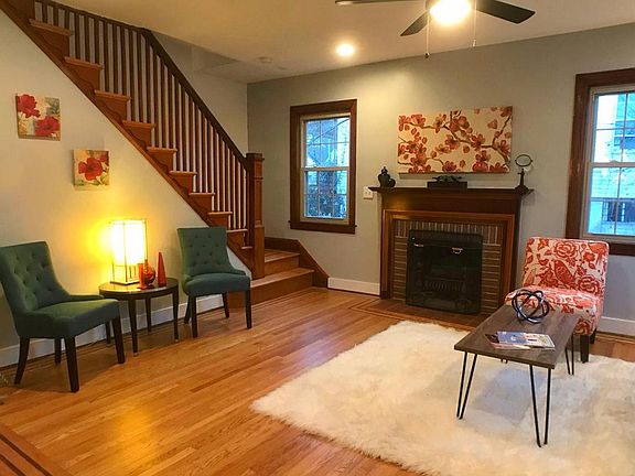 BRAND NEW RENOVATION-historic elements preserved! 1423 finished sq ft. ALL NEW plumbing, electric, HVAC, kitchen, baths & finished basement ORIGINAL hardwood trim and doors, gorgeous ORIGINAL REAL hardwood floors w/inlay, original staircase, fireplace mantle and more. Huge 520 sq ft garage with workbench, new driveway, new deck, yard with shade tree, quiet street.Not a cookie cutter home. MUST SEE