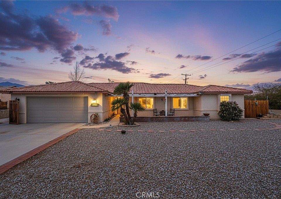 Discover your oasis with this inviting property. This home features an inviting layout. Perfect for entertaining. Perfect for those seeking tranquility in the desert. Step outside to enjoy the expansive outdoor area, ideal for soaking up the sun and entertaining guests. The property is surrounded by picturesque desert landscapes, offering stunning views of the mountains and a peaceful atmosphere. Conveniently located near shopping, dining and entertainment, this home provides a perfect balance of relaxation and accessibility. Featuring a fully remodeled kitchen, granite counter tops, new appliances,porcelain flooring, new custom paint, brand new AC unit, furnace and water heater, new garage opener and motor, new electric gate. A must see!