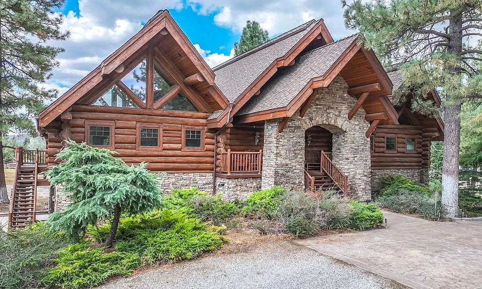 Welcome to Angels Crossing on Devils Ladder in beautiful Garner Valley. Majestic custom log home built with imported Canadian logs featuring a huge great room with vaulted ceilings and 3 custom antler chandeliers and a massive stone fireplace. The expansive windows capture the scenic mountain views while the french doors open to a large deck providing an elegant space for relaxing or entertaining. The dining room also features french doors opening to the deck. Adjacent to the dining room is a cozy library room perfect for relaxing and enjoying the stunning views.The huge gourmet kitchen is a chefs dream offering top of the line appliances, granite counters and a wine refrigerator. Featuring 3+ bedrooms including a luxurious primary suite with its own fireplace. The primary bath includes a spa tub and large walk in shower. Complete with a large walk in closet. The main level also has a separate laundry room and a guest bath, Upstairs is a loft area perfect for a family retreat or quiet office space or 4th bedroom. The lower level is designed for comfort and entertainment including 2 jack & Jill bedrooms with a full bath. a full size laundry room, with extra storage and an additional 3/4 bath. The large family room is suitable for guests with a built in Murphy bed. also featured is an entertainment center with a wet bar and refrigerator which makes this the perfect gathering space. The french doors open to the patio seamlessly blending outdoor and indoor living. The grounds amenities beyond the main home include a separate Gym with top of the line equipment (available to purchase separately) with a separate sauna for the ultimate relaxation. The equestrian facilities designed for the horse enthusiast include a newer Castlebrook barn with 4 large 12 X 16 stalls, tack room, feed room and includes an ADU /guest/caretakers quarters with a 3/4 bath. With the upstairs loft in the main home and the separate guest quarters in the barn boosts 5 sleeping areas perfect for extended family or occasional guests. Also included is a round pen and 4 separate large pastures, one is over 5 acres. Also included is a large separate fenced yard suitable for dogs etc. A Generac and Two huge water storage tanks complete this incredible estate.