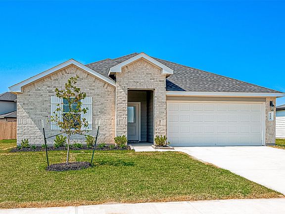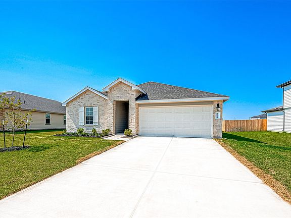 Welcome to your dream home in the stunning new community of Evergreen! This home features over 2,031 sqft of living space, including 4 bedrooms and 2 bathrooms, each showcasing unique details. The primary bedroom features an elegant sloped ceiling and a spacious en-suite bath. Enjoy the open-concept living, dining, and kitchen area with a kitchen island/breakfast bar and beautiful waterfall granite countertops. The generous living room flows seamlessly into the backyard and covered patio, perfect for entertaining! Throughout the home, you'll find stylish Silversmith LVP flooring. The exterior boasts a classic brick facade and a convenient 2-car garage. Evergreen offers fantastic community amenities and is ideally located in the rapidly growing city of Rosenburg!
