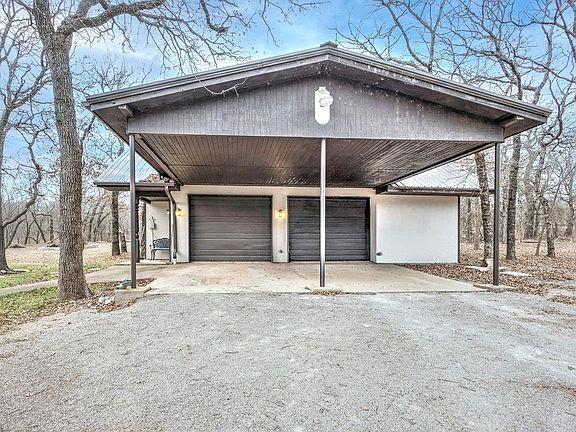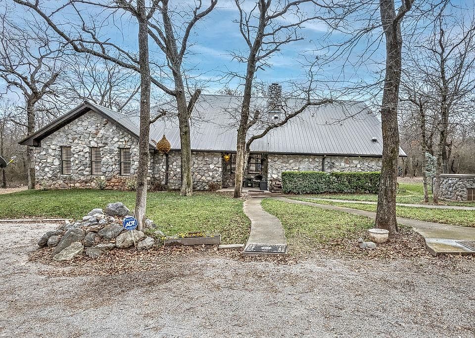 Perfect country living! Situated on 8.8 acres, this well-maintained 3-bedroom, 2-bath property offers the space, privacy, and peaceful setting many buyers are searching for, tucked away among the trees with abundant wildlife. The living room is anchored by a wood-burning fireplace with blowers, complemented by custom built-in bookshelves and cabinetry, while wood plantation shutters, vaulted ceilings, and updated lighting create an open yet comfortable atmosphere with the ability to set a more intimate mood. Just off the living area, the formal dining room provides ideal space for entertaining and flows seamlessly into the kitchen for everyday functionality. The updated kitchen features knotty alder cabinetry, granite countertops, a center island with electric cooktop and breakfast bar, and stainless steel appliances approximately four years old, along with ample room for a breakfast table, impressive pantry storage, and a built-in desk nook. An oversized laundry room doubles as a functional workspace and offers generous storage and a utility sink. The primary bedroom easily accommodates large furniture and includes an ensuite with dual sinks, a separate makeup vanity, jetted tub, and walk-in closet. A spiral staircase leads to a loft overlooking the bedroom, currently used as a home office, complete with custom built-ins and a wet bar, with all loft furniture remaining. Two additional bedrooms are nicely sized, and the hall bathroom was remodeled approximately four years ago. The home is supported by 21 concrete piers beneath the slab and includes a basement measuring approximately 14’ x 16’, offering additional usable space with built-in bunk beds and a large gun safe that will remain. Recent updates include a two-year-old HVAC system, new septic lines, new interior doors, a kitchen water filtration system, and a whole-house water softener. A detached two-car garage with a 2-car carport provides substantial storage and includes partial plumbing for a future bathroom. The home is serviced by rural water but also has a water well supplying the sprinkler system. Fully fenced with wire fencing and a gated entrance, this property is well suited for buyers seeking acreage, solid construction, and a quiet country lifestyle with thoughtful improvements already in place.