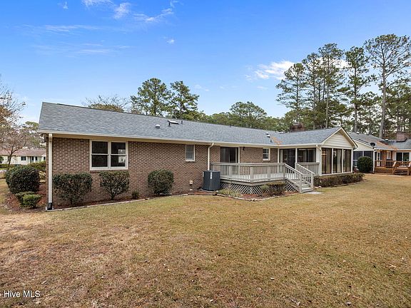 This charming ranch home, recently updated, is ready for its new owners to move in! Located in the gated Fairfield Harbour Community, just minutes from Downtown New Bern, this 3-bedroom, 2.5 bathroom home offers comfort and convenience. As you step inside, you'll be greeted by a bright foyer that flows into the spacious living room. The living room features a triple set of windows with a view of the Birdland marina in the Inner Harbour. Slips can be leased through the POA if available and is steps away from the house! Living room focal point also includes a modern electric fireplace with a ship lap surround and mantle. The open dining room features a sliding glass door perfect for enjoying views of the outdoors and leads out to the deck. The kitchen is designed for functionality, featuring ample cabinetry with plenty of countertop space for meal prep and serving. New granite countertop and glass tile backsplash. The refrigerator is included. The kitchen overlooks a cozy family room with built in bookshelves/cabinetry and features a fireplace with brick hearth and surround. Adjacent to the family room is a laundry/mudroom with cabinetry for additional storage, plus convenient access to the garage. Step from the family room into a 235sf sunroom that is heated and air conditioned! Great flow to this home for entertaining. The primary bedroom includes walk in closet and a private ensuite bathroom. Bathroom has been updated with new double sink vanity & tile step in shower. Two additional generously sized bedrooms share a full updated hall bath. The entire home has been freshly painted, and new Laminate flooring has been installed throughout the home except kitchen & baths are tile. A new HVAC system installed in 2025. New roof shingles installed 2025. Additional features include a two-car garage with newly painted floor, a storage shed in the backyard, and an updated, move-in-ready layout. Don't miss the opportunity to make this lovely home yours!