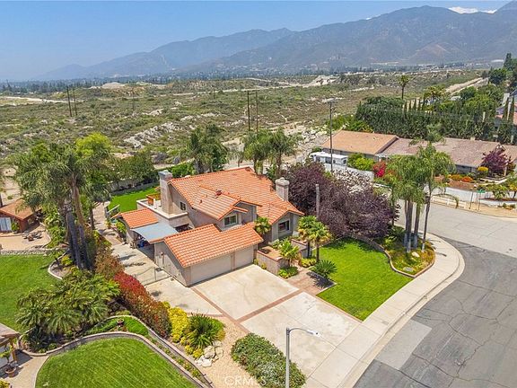 STUNNING UPGRADES & FUN AMENITIES! Gorgeous 2-story Alta Loma home with RV space & main level BR nestled high along pristine foothills with sweeping views of mountains & city lights! Replete with local mountain biking activities directly west.  Custom art gates lead to front courtyard & inviting entryway with solid mahogany door & sidelites. Dramatic vaulted 2-story ceiling over entry & formal living space! Unique raised formal living room with upgraded fireplace & stately mantle. Huge window with garden & fountain view from spacious formal dining room. Large family room with bamboo flooring, upgraded fireplace & custom mantle, built-ins & surround sound. Fireplaces have high output gas logs. The chef in your family will love this spacious remodeled kitchen with beautiful cabinetry, polished granite counter tops, fully tiled back splash, new stainless steel appliances, extra wide breakfast bar, & coffee/tea station. Gorgeous custom staircase railing with intricate detailed metal work leads to the landing with an upgraded bookcase. Generous-sized primary suite with wrap-around balcony, spiral staircase & panoramic views. Remodeled primary bathroom features large soaking tub, separate shower, double sinks, privacy toilet door & custom updated closet with organizers. More items: Upgraded tile & wood flooring, new vinyl windows, custom paint throughout, smooth coat walls & ceilings, smooth exterior stucco, new 50 gallon water heater. Private, expansive grounds are your own backyard oasis, with serene patio spaces shaded by natural foliage. Huge covered patio for outdoor dining in any weather, custom 2-story playhouse, built-in nat gas BBQ, & covered area for hot tub with 220v outlet.  Variety of mature fruit trees (Avocado, Meyer Lemon, Navel Orange, Ruby Red Grapefruit, Valencia Orange). Tranquil 9,000 gallon concrete koi pond with waterfall & custom filter.  Relax on the pond viewing deck with pergola cover. Ample parking with a spacious driveway, 3 car finished garage, covered implement storage with attached storage shed. More items: 4 O’Hagin® roof vents, septic tank extensions, dedicated main water line for irrigation & hose bibs, Wi-Fi irrigation clock, outdoor speakers, electric outlets throughout backyard, & high performance outdoor ball lights & security lights on daylight sensors. In sought-after Alta Loma neighborhood near award-winning schools, restaurants, shops, recreation more! FIND LINK IN SUPPLEMENTS FOR EXTENSIVE LIST OF UPGRADES/AMENITIES.
