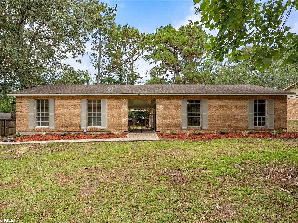 Discover this exquisite remodeled home nestled in the heart of Mobile, mere minutes away from the University of South Alabama, Municipal Park, and Azalea City Golf Course. This brick home boasts an expansive family room with laminate wood flooring that leads into a spacious dining room; all inviting areas for entertaining loved ones. Prepare to be captivated by the stunning kitchen featuring all new white cabinetry, a generous island adorned with pendant lighting, granite counter tops, stainless steel appliances, and over sized pantry. The three bedrooms have brand new carpeting while the two bathrooms feature all new tile flooring, tiled showers, modern vanities, lighting, and mirrors. There is a side covered area that could serve as a carport or covered patio for grilling out with friends. Across the patio is an enclosed space with ample windows, that is perfect for a workshop, storage, or man cave. Call to schedule your personal showing of this lovely home! All measurements are approximate and not guaranteed, buyer to verify.