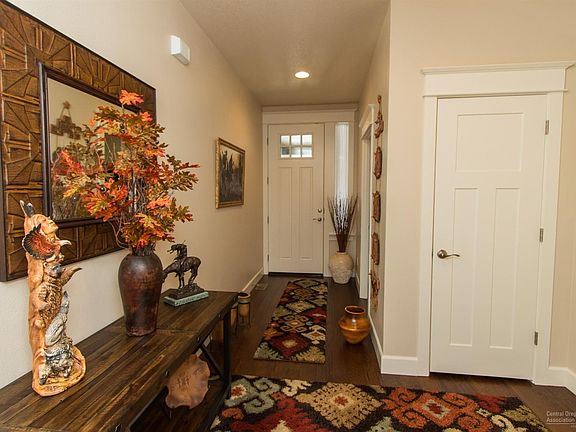 Craftsman bungalow in Hidden Hills. Covered front porch leads to foyer and hallway leading to bright great room at the rear with southern and western exposure, gas fireplace and vaulted ceiling. Open kitchen has island w/ raised eating surface. Secluded master suite w/ walk-in closet. Bath w/ walk-in shower, two vanity sinks and enclosed WC. Cheery front bedroom suitable as den/office. Door leads from dining area to deck and back yard. Attractive finishes make this a cheerful and functional place to live.