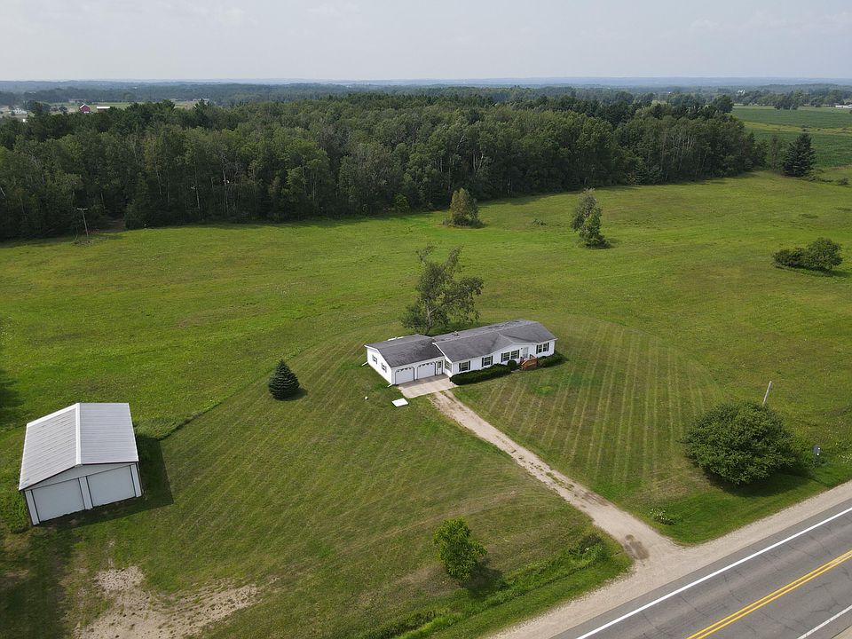 Great Opportunity to own 17 acres at the corner of M-66 and US 10. Frontage on both US 10 and M66 provide for endless possibilities! The ranch style 3 Bedroom 2 Bathroom home has a very spacious set up. All 1 Level provides a lifestyle of convenience. Large Master Suite and a large Mud/Laundry room coming off the Double car garage are great features. Also on the property is a 40x24 Pole Barn with its own separate driveway. The tillable ground outback has been moderately farmed over the years - but turn it up a notch and it could produce what you would like! Make your ideas a reality, check this property out!!