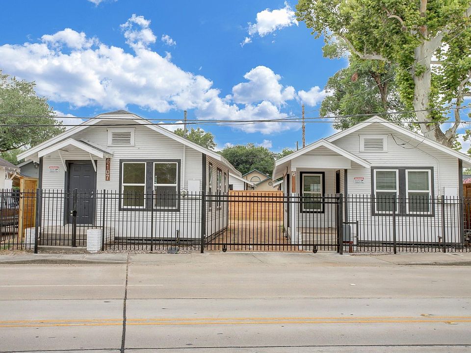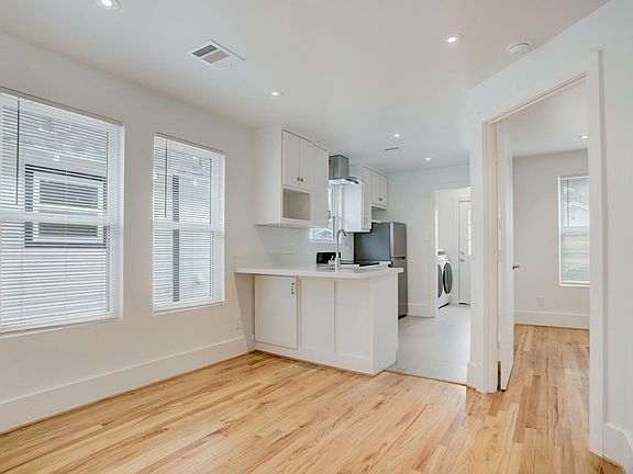 Beautifully remodeled and thoughtfully redesigned, this charming Heights home blends modern comfort with classic bungalow appeal. Bright, open living and dining areas flow seamlessly into a sleek kitchen featuring quartz countertops, stainless steel appliances, ample cabinetry, and a convenient breakfast bar. Gorgeous wood floors run throughout, enhancing the clean, airy feel. The spacious indoor utility room offers extra storage and a full-size washer/dryer setup. The bathroom showcases contemporary finishes, a deep soaking tub, and built-in shelving. Both front and back entrances provide easy access, with a fully fenced private backyard perfect for relaxing or entertaining. A gated shared driveway leads to dedicated rear parking. Move-in ready and located minutes from dining, parks, and all the best the Heights has to offer.