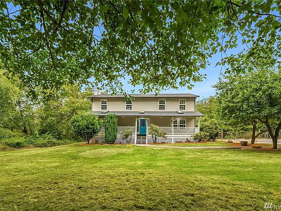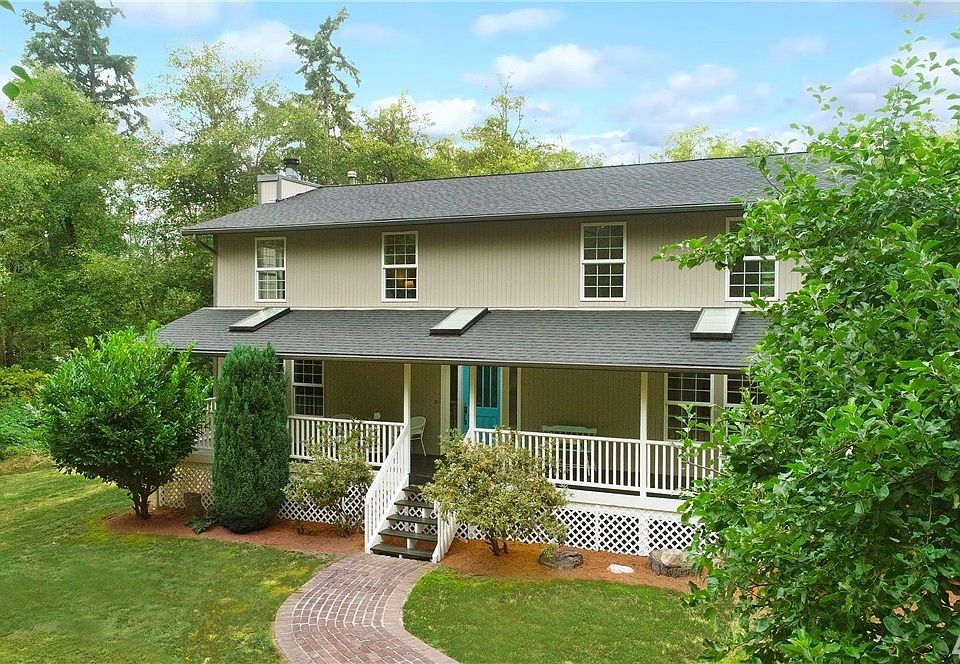 Here's an island farmhouse nestled in a forest! Ten acres of beautiful, level woodlands encircle this spacious island gem. A country drive leads through tall trees to this sun-filled setting and spacious, inviting home. The huge, classic covered front porch welcomes you, and multiple living spaces on the main floor make room for everyone. Enjoy a casual meal in the country kitchen that has room for many cooks! Or host a dinner party in the formal dining. The upper floor is devoted to four bedrooms and two full baths including a serene master suite with splendid light and pastoral views. Even more space awaits your customizing in the full basement! Glass doors open to a huge back deck that looks across wide lawns rimmed by forest. There are established fruit trees, and sunny space is already in place for your veggies with plenty of room to expand your gardens. Or simply relax and enjoy the peace and quiet! This magical island location is equally close to both Pt. Robinson lighthouse and Vashon's popular golf course, at the heart of Maury Island.