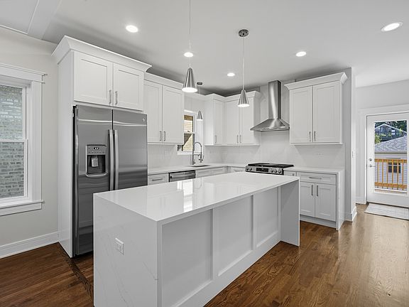 Welcome to the highly sought-after Portage Park neighborhood of Chicago, introducing this new construction beautifully renovated Chicago Bungalow - with almost 3,000 SF of Luxury Living. This 5-bedroom, 4.5-bath bungalow blends classic charm with modern design. The open-concept main floor features custom ceilings, hardwood floors, two fireplaces, and a chef's kitchen with oversized quartz island, waterfall edges, full backsplash, and high-end appliances. Dual primary suites-one on the main level and one upstairs-each offer private en-suite baths, while the second-floor addition provides three more bedrooms and two full baths. The fully finished basement, excavated down for higher ceilings, includes a family room with fireplace, wet bar, bedroom, full bath, and laundry. Extensive upgrades include all-new windows, roof, siding, soffits, gutters, concrete, tuckpointing, drain tile system, overhead plumbing, new 1.5# copper water service, tankless water heater, dual HVAC, and 200-amp service. A new deck and two-car garage complete this modernized Chicago bungalow-ideally located near shopping, dining, and convenient highway access. Meticulously rebuilt with city permits and approvals.