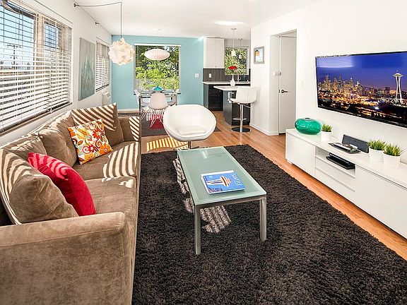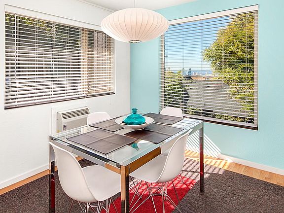 This beautiful TOP FLOOR apartment is offered partially furnished or unfurnished and is in a small four-unit, 1955 mid-century modern building and boasts a top to bottom remodel with contemporary finishes. There is a nice territorial view from the dining room window. Note: the building exterior has been painted white and it is even more attractive than the photos. It is conveniently located on a quiet residential street in the heart of North Capitol Hill, just two blocks south of Volunteer Park and just a 10 min walk to the Light Rail Station. The building is situated in a neighborhood of million dollar mansions yet is within blocks of restaurants, coffee shops & grocery stores on 15th Ave. The kitchen has quartz countertops, and stainless-steel appliances. The bathroom has tile floors and tile bath. The apartment contains: cozy gas fireplace, modern furnishings, a 55" HDTV, walk-in closet, a queen-size sofa sleeper, in-wall A/C unit plus washer/dryer in the unit. There is a small shared deck with a BBQ is just outside your front door for cookouts. The apartment has a private entrance. Reserved off-street parking available for $100. No pets. No smoking in the aptmt. $100 water/sewer/garbage/gas utility charge ($150 if 2 occupants). $100 for off-street parking. Tenant pays electricity. $1800 deposit. Last mo rent spread over 6 months. $45 application fee.