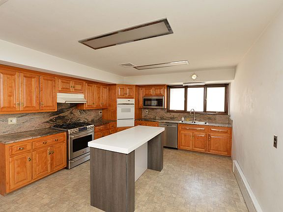 Discover timeless elegance and breathtaking NYC skyline views in this exceptional raised Ranch home nestled in Carlstadt. Boasting 5 spacious bedrooms and 4.5 bathrooms, this residence offers an abundance of living space and sophisticated charm. Step into a welcoming entry foyer that leads to an expansive living room adorned with modern chandeliers and double glass doors opening onto an oversized balcony, perfect for entertaining or simply soaking in the stunning views. The formal dining room, complete with built-ins, seamlessly flows into a generous eat-in kitchen featuring ample cabinetry and a center island ideal for gatherings. The first floor also offers remarkable versatility with a cozy living room and multiple bedrooms, all with balcony access, including two with ensuite bathrooms. Additional highlights include a full hallway bathroom, a stylish powder room, and a convenient laundry room. The ground level extends the living space with two additional spacious bedrooms, a full bathroom, a large family room, a dedicated game room, and abundant storage options. Perfectly positioned just 5 minutes from the American Dream Mall and MetLife Stadium, close to NJ Transit stations, and only a 10-minute drive to the Lincoln Tunnel for quick access to NYC, this home offers unbeatable convenience!