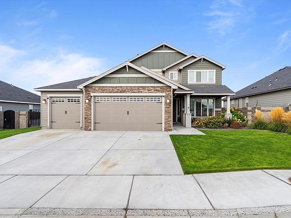 MLS# 287960 Gorgeous 2-story home in excellent condition offering 4 bedrooms, 2.5 baths, and a 3-car garage. Inside you’ll find stunning LVP flooring, a cozy fireplace in the great room, and an open kitchen with quartz countertops, painted cabinetry, and a full tile backsplash. All 4 bedrooms are upstairs, including a spacious primary suite with walk-in closet. A den on the main level provides flexible space for an office or playroom. Thoughtful upgrades include a hidden doggy door with cabinet locks, 220V outlet in the garage, Blink camera system with on-site hard drive, and a propane fire pit with tank. The backyard is beautifully set up with ground lighting along the pillars, string lights that stay, raised garden boxes each on timers, and a chicken coop with irrigation, automatic waterer, and winter heat lamp. Complete with block wall fencing, double gates, and located in a desirable West Richland neighborhood close to new amenities—this home is the perfect blend of comfort, style, and function!