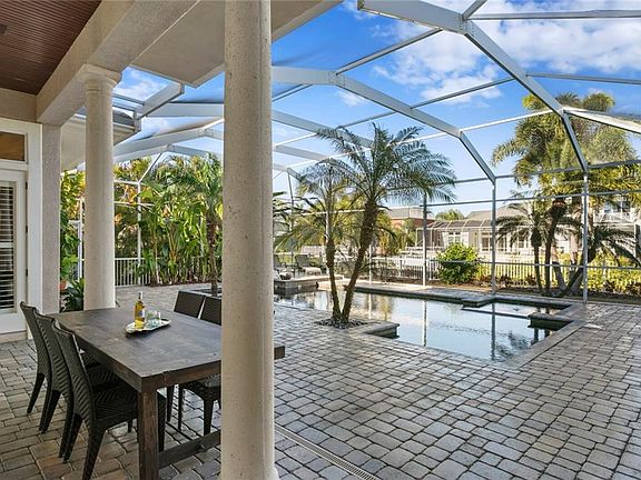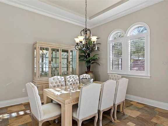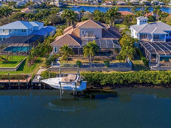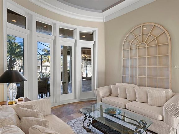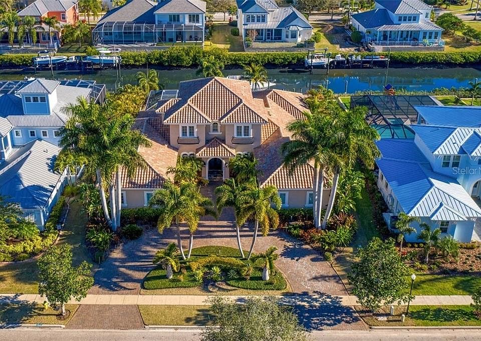 Enjoy the very best of waterfront lifestyles in the coveted guard-gated MiraBay community. Located on a deep water canal and minutes from the open water of Tampa Bay and the Gulf of Mexico, this custom home is designed to impress on a private cul-de-sac with 100 feet of waterfront. Leaded glass front doors and a grand circular drive welcome you to an outstanding floor plan where the view takes center stage. From the stunning foyer entry, light-filled living spaces feature 12-foot ceilings and designer appointments throughout, natural gas, a first floor master retreat and media room, complemented by a private composite dock and garage parking for 4 vehicles. The flowing first floor offers a gourmet kitchen featuring Obsidian granite, center island, top-of-the-line appliances, 6-burner gas stove top, integrated refrigerator and wine refrigeration, breakfast room, family room with gas fireplace and custom shelving, formal living room, formal dining room, office with French doors and inviting home theater. Escape to the owner's retreat with a tropical pool view, paneled accent wall, luxurious bath and expansive executive closet. The second level features 3 large bedrooms, custom closets and 2 additional baths. An oasis awaits outdoors on a screened lanai featuring a heated saltwater pool and spa, covered dining/entertaining area, outdoor kitchen, refrigeration and wet bar. Spend endless hours on the water from the full service dock, with power and water, 16,000 lb. boat lift and 2 jet ski lifts. Additional features include custom closets throughout, solid wood doors, plantation shutters, transom windows and French doors, tropical landscape and irrigation system, two 2-car garages, security system, water softener and central vacuum in this amenity-rich community near beaches, recreation, downtown Tampa, shopping and dining. Beautifully poised on 1,000 acres of natural preserves, community amenities include the MiraBay Club, fitness center, Jr. Olympic pool, lighted Har-Tru tennis courts, playgrounds, sports courts and more.