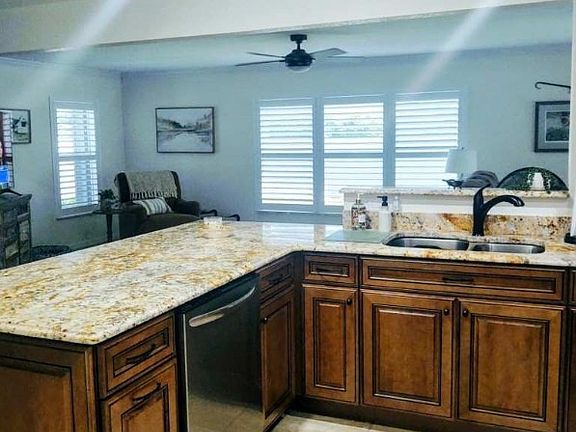 Breakfast barGranite counter topsLarge backyardFamily roomOpen conceptRocked areaRoom for golf cart