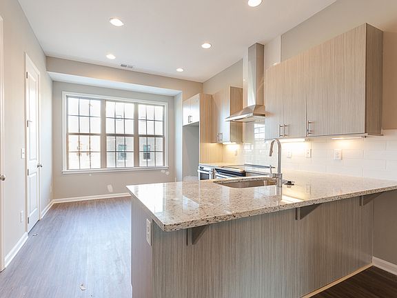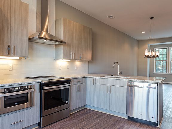 The Jefferson on homesite 4 features: Three level living with 2 Bed & 2.5 Bath and 1,440 sq. ft; Buckhead Skyline Design Collection; Painted brick wall in first floor study; Upgraded whirlpool appliances including stainless steel chimney hood and microwave drawer; Contemporary Kitchen cabinets with quartz countertops; Owner suite bath features a frameless shower enclosure. End Unit.