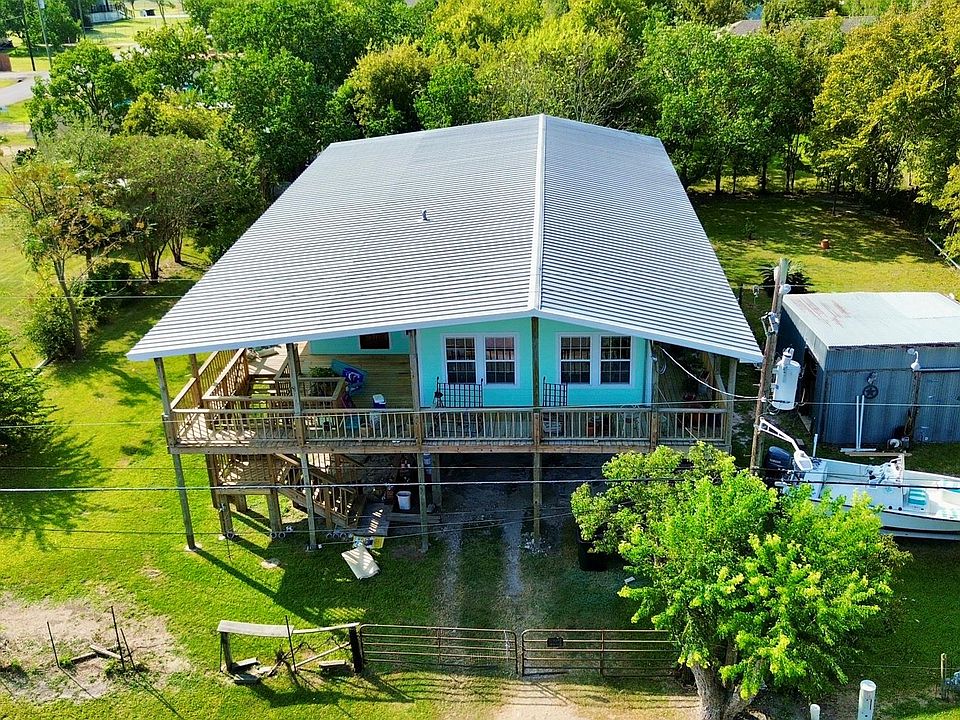 Experience coastal charm and wide-open space with this beautiful San Leon property situated on five full lots. The home welcomes you with a large wrap-around porch that’s perfect for relaxing in the evening breeze or watching sunrises over the bay. Inside, you’ll find soaring high ceilings and an open-concept layout that feels bright and airy. The spacious kitchen offers abundant cabinetry, tons of counter space, and plenty of room for cooking, entertaining, or gathering with family. The oversized primary suite includes his-and-hers walk-in closets and a large private bathroom ready for your personal finishing touches. With so much land, there’s endless potential for gardens, a pool, workshop, or even guest quarters. Located just minutes from Mooner Beach and the Galveston Bay shoreline, this property combines the best of coastal living with a peaceful, laid-back San Leon setting—no HOA and plenty of room to make it your own.