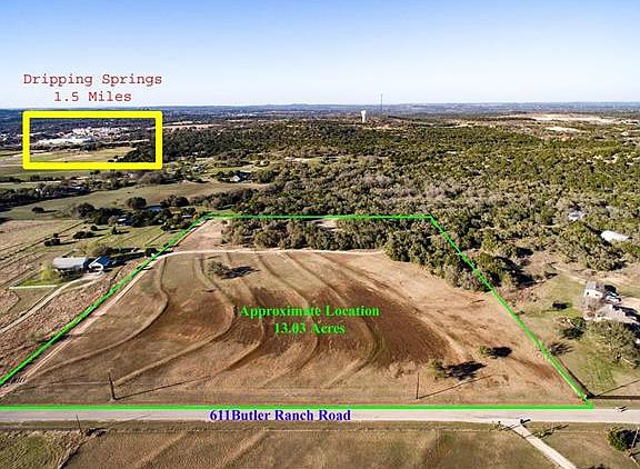 13 acre Equestrian Estate 1 mile from downtown Dripping Springs.Gated, and fenced on all four sides, this magnificent showpiece is five minutes away from HEB and Home Depot.Deep, fertile loamy soil in southern pasture is easy on animals' hooves, and a 40' X 50' steel superstructure for a barn, is currently erected. Northern 1/2 of property is guarded by many huge oaks and large mountain laurels. Numerous building sites. Not in city limits, but has CITY WATER & paved street. Deer/turkey roam property.