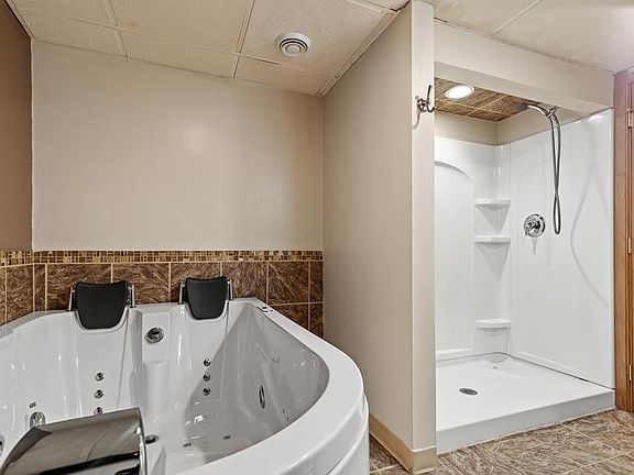 The lower level provides comfortable additional living space with a cozy family room complete with a gas fireplace, a dedicated office space, and a full bathroom featuring separate shower and tub.