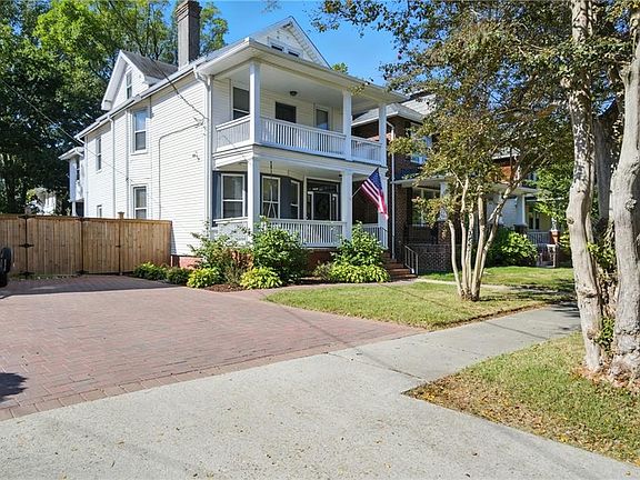 Beautifully updated and spacious, this 4–5 bedroom, 2.5-bath home in sought-after Colonial Place sits on a rare, oversized lot. A perfect blend of historic charm and modern comfort, it features gorgeous wood floors, a renovated kitchen, and a first-floor full bath. The inviting primary suite offers a private balcony overlooking crape myrtle-lined sidewalks. The finished third-floor bonus room adds flexible living space for guests, office, bedroom, or playroom. Enjoy outdoor living on the newer paver patio, plus a large shed for storage. With many updated windows, a dedicated laundry room, and off-street parking for 4+ cars, convenience meets character throughout. Located just blocks from North Colley dining, ODU, the Lafayette River, and just minutes to downtown or the beach—this is classic Colonial Place living at its best. No flood insurance required.