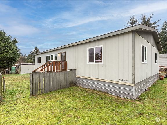 SPACIOUS, CLEAN AND MOVIE-IN-READY! This light & bright Ardmore mfg home in the B&R mobile home park sports 3 bedrooms, two full baths, vaulted ceilings & laundry room off the roomy kitchen. Main bedroom has a walk-in closet, full bath with a big tub/shower. Recent upgrades include new double-paned windows; new porches & steps front & back, 2021 GE stove/range. Storage galore, including two nice sheds in back, both with power. The big, sunny back yard is ideal for playing, gardening or just relaxing. Exterior freshly power-washed, carpets & home professionally cleaned. Park rent is $575/mo and includes water, septic & garbage. Cats & dogs allowed, combined weight of 50#. Close to schools, library, stores, bus stop & 10 min to Port Townsend!