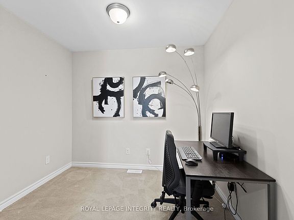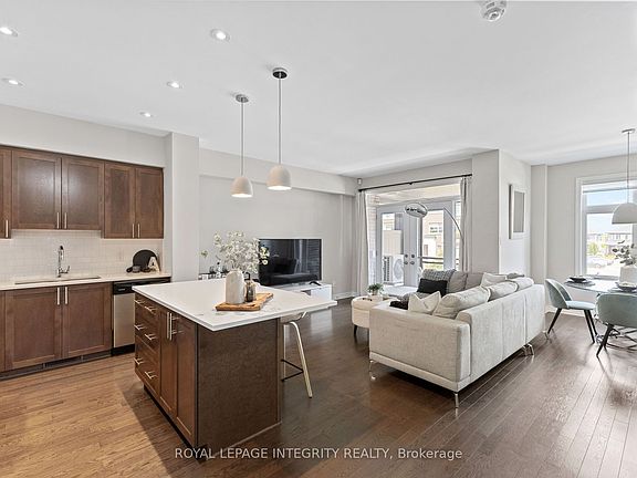 Welcome to this Richcraft -built 2 bed, 2 bath + den freehold townhome (no monthly fees) in the highly desirable Trailsedge community perfect for anyone seeking comfort, style, and convenience. Step into the foyer that offers direct access to the attached garage and a main-level den, ideal for a home office or creative space. The second level offers an airy open-concept layout with hardwood floors throughout the kitchen, dining, and living areas. The kitchen features quartz countertops, a central island, natural gas stove, and stainless steel appliances perfect for entertaining or everyday living. Off the living room, enjoy your own covered balcony a private spot to relax, rain or shine. Upstairs, you'll find 2 well-sized bedrooms, a full bathroom, and laundry conveniently located on the same level. Located just a short walk to Patrick Dugas Park, you'll love access to tennis courts, green space, and forested trails. Transit, shops, and essentials are all nearby, making daily life a breeze. Whether you're working from home or on the go, this Trailsedge gem offers the ultimate in low-maintenance, lifestyle-friendly living.