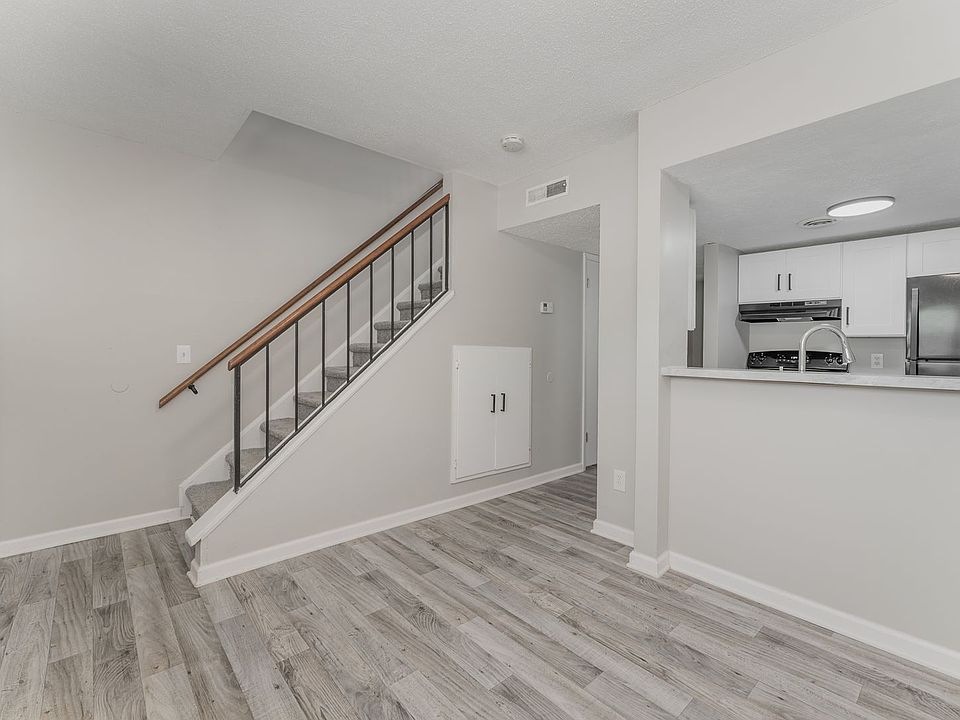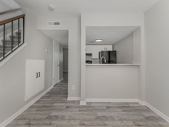 Our spacious, 2-bedroom 1.5-bathroom townhouse-style units feature modern essentials such as a refrigerator and electric range stove. Our units vary in style - showcasing carpeted and LVP vinyl flooring, and white appliances. This type of apartment also contains washer and dryer hookups, and black appliances.