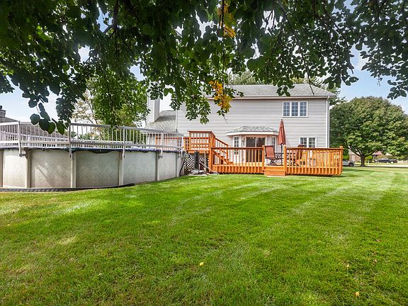 Approximately 2,600 square feet of living space. This home features five bedrooms and three and a half bathrooms. The property includes a pool and a newer deck. The home is oversized and located on a cul-de-sac . A park is nearby, and the basement is finished, providing additional living space. The primary bedroom is spacious and inviting with a jacuzzi tub. The attached bathroom includes dual vanities and a large walk-in shower. Three of the additional bedrooms are well-proportioned, while the fourth offers a more intimate setting. The half-bathroom on the main level provides convenient access. The open floor plan allows for seamless flow between the living, dining, and kitchen areas. Abundant natural light fills the space, creating a bright and airy atmosphere. The kitchen features ample cabinetry and counter space, making meal preparation a pleasure. The finished basement offers versatile living space. Homeowners may choose to utilize this area as a rec room, home office, or additional living quarters. A convenient full-bathroom and bedroom are also located on this level. The oversized lot provides ample room for outdoor enjoyment. The pool is an ideal amenity for warm weather relaxation and entertainment. The newer deck offers a delightful space to dine or simply unwind. The nearby park adds to the appeal of this desirable location.